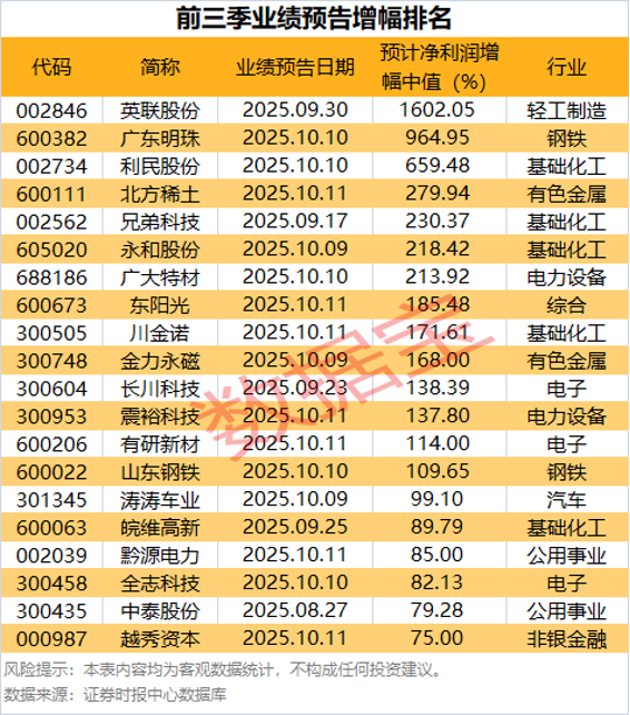 href=/002846/>英联股份(002846)预计净利润增幅最高,预计前三季度实现净利润增幅中值为1602.05%;广东明珠、利民股份)