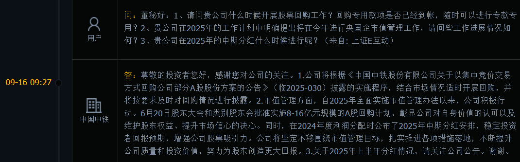 href=/002475/>立讯精密(002475)、金风科技 data-match-index=0>金风科技等行业龙头。其中中国中铁是本年度第一家发布回购方案的建筑类破净央企,但公司4月底发布回购预案后,一直未正式启动回购。有投资者在互动平台提问回购相关问题,公司回复表示,将根据此前披露的实施程序,结合市场情况适时开展回购,并将按要求及时对回购情况进行披露。