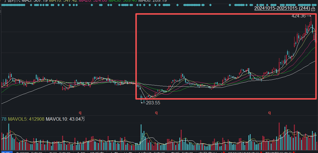 而宁德时代在4月大手笔回购15.51亿元后,5~7月连续三个月为零回购,随后8月恢复回购,9月继续发力,单月回购金额超过前期月份回购总额之和。从股价表现来看,宁德时代5~7月整体处于横盘震荡趋势,8月以来开启了一波上涨行情,9月底股价一度超过本次回购价格上限392.32元/股,10月9日股价还创出上市以来新高,盘中最高涨至424.36元。