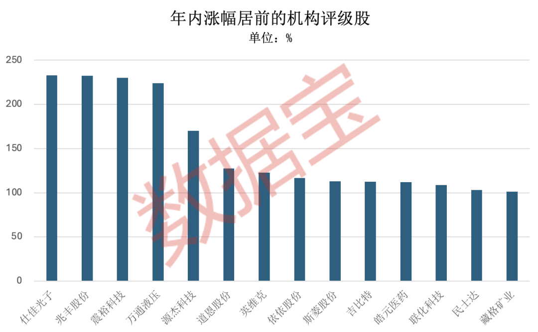 上述140股今年以来平均上涨39.56%,14股年内涨幅均超100%,其中仕佳光子、兆丰股份)